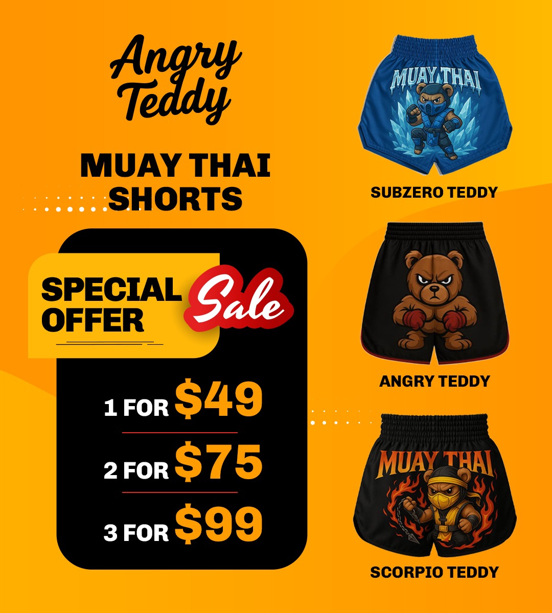 Houston realized that much of the fighting gear available looked very similar, with little variety or originality. He wanted to create something different, something that combined his creativity with his lifelong love of martial arts and the video games he grew up playing. Angry Teddy was born out of this vision. Each design takes inspiration from the nostalgic characters and games of his childhood, reimagined through the lens of fierce teddy bears. The teddy bears represent those iconic characters while bringing a playful yet powerful energy to modern fighting gear.